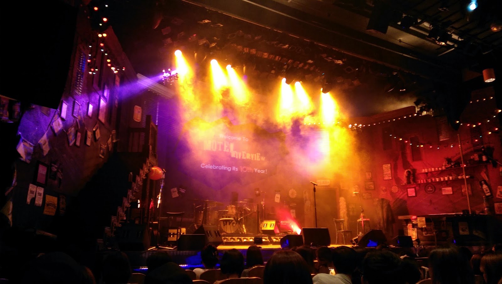 a musical theater had redesigned their exterior to match the setting of the musical that was current being shown